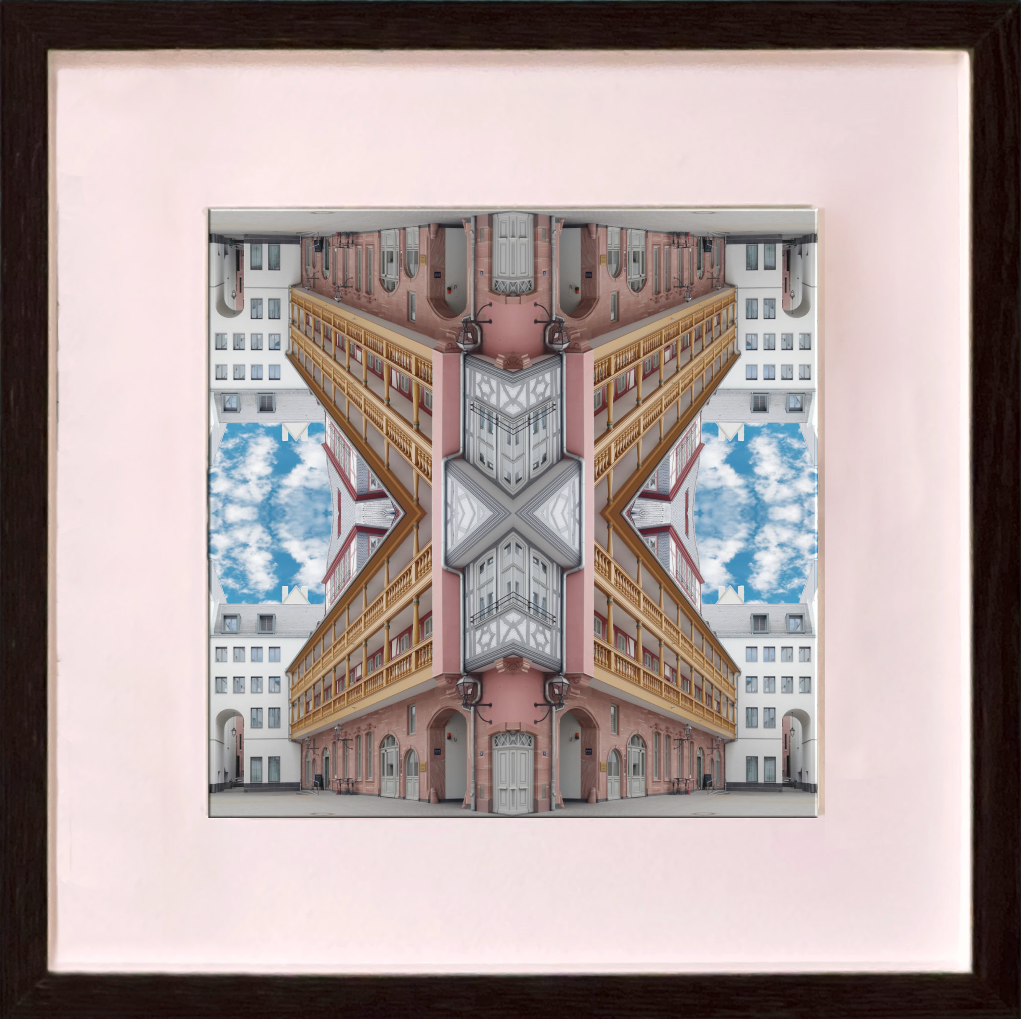 Die Neue Altstadt ist ein viel beachtetes Projekt neuer Stadtplanung. Die Vielgestaltigkeit aufgreifend, gleichen die fotografischen Bildobjekte einem ornamentalen Bilderrätsel. Sie verführen den Betrachter dazu, den Perspektiven und Sichtachsen zu folgen, die Fassaden genauer in Augenschein zu nehmen und gestalterische Elemente zu entziffern. Wie beim Blick durch ein Kaleidoskop entsteht ein verführerisches Spiel zwischen ganzheitlicher Wahrnehmung und der Lust am Wiedererkennen der Details. Und wie bei einem Spaziergang durch die Stadt, verändert sich je nach Lichteinwirkung und Position des Betrachters die Strahlkraft der Motive.